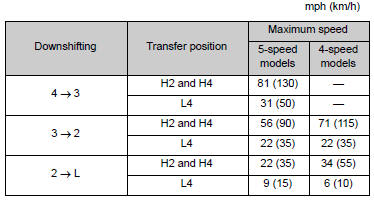 The shift lever cannot be downshifted if the following speeds are exceeded.
