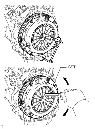 (a) Insert SST into the clutch disc assembly, and then install SST and the clutch disc assembly together to the flywheel sub-assembly.