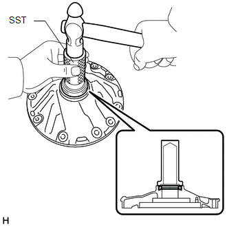 (a) Using SST and a hammer, install a new front oil pump oil seal to the front oil pump body sub-assembly. SST: 09350-30020 09351-32140 Standard depth: -0.3 to 0.3 mm (-0.0118 to 0.0118 in.) |